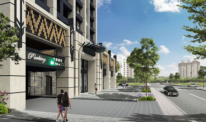 基地為791.39坪,為一棟樓高地上15層地下4層的建案,一層11戶共用3部電梯,共有147戶住家,一樓有8戶店面。主要銷售格局為18、19坪的2房及26、30坪的3房。公設比約34.2%,公共設施有接待大廳、空中花園、交誼廳、健身房、兒童遊戲區、廚藝教室、曬被區、Lounge Bar、撞球區、電子籃球區、星空露營區、親子BBQ等。