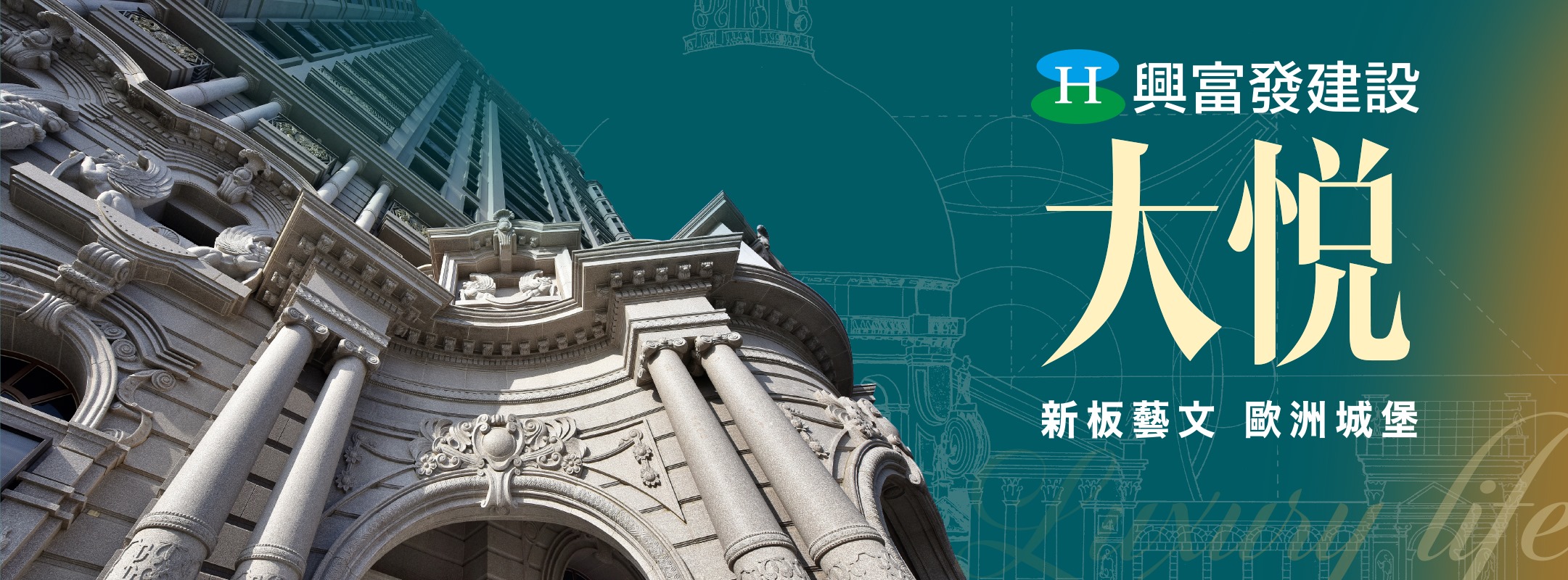 「興富發大悦」位於新北市板橋區藝文特區附近江翠重劃區的新成屋建案,由興富發建設投資興建,預計於2021年第二季完工,採2棟連通設計,以壯闊崗石為基座的巴洛克式建築,內部更擁有高端建材規格及配備,其工程造價更超越其他現代建築,每坪牌價55萬元起。
